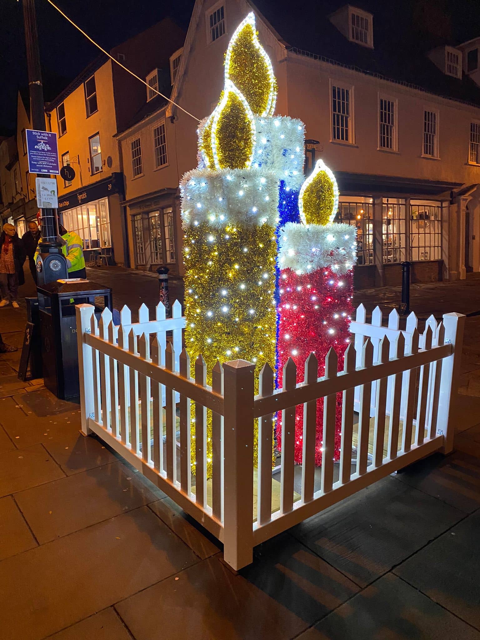 We are now manufacturing bespoke products particularly to appeal to the ‘Photo Opportunity’ market where there is now a big demand. We are also able to undertake more detailed work such as the model of Truro Cathedral which we were commissioned to build. This was mad to scale and is illuminated by some 15000 low voltage LED lights. The replica is 5 metres long, is 1.5 metres wide and 4.5 metres to the top of the highest spire. We also have in our range Giant Candles, Walk in Presents, DMX illuminated 3 metre diameter Bauble, Photo Frame feature, Giant stack of presents and are currently developing other exciting ideas.